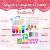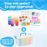 Met schortje, handige opbergkist, 62 onderdelen én digitale handleiding: deze XL Slijm Maken Set is, snel opgeruimd en barst van het creatief plezier. Ontdek samen het veiligste en meest complete slijm speelgoed voor thuis, feestje of klas!