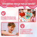 De set zit vol met gekleurde slijmbasis, foam beads, fruitgeuren en alle tools voor jonge ontdekkers. Kinderen maken elke keer iets nieuws: een fluffy slime of gekleurd mengsel. Ondertussen oefenen ze motoriek, samenwerking en hun fantasie, zonder dat ze het zelf doorhebben.