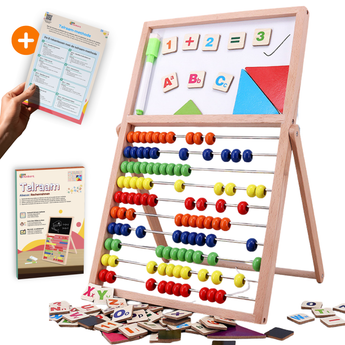Naast het klassieke telraam biedt deze set een krijtbord én whiteboard. Kinderen wisselen gemakkelijk tussen sommen maken, letters oefenen of zelfs kleine puzzels oplossen. Magnetische cijfers en symbolen zorgen voor extra variatie en plezier.