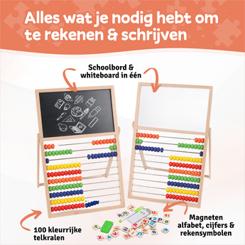 • Inclusief whiteboard, krijtbord én magnetische letters en cijfers