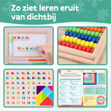 Het telraam groeit mee van peuter tot schoolkind. Begin met simpel tellen en kleurherkenning, ga daarna door naar optellen, aftrekken en tafels oefenen. De bijgeleverde lessen en het diploma geven een trots gevoel van afronden en vooruitgang.