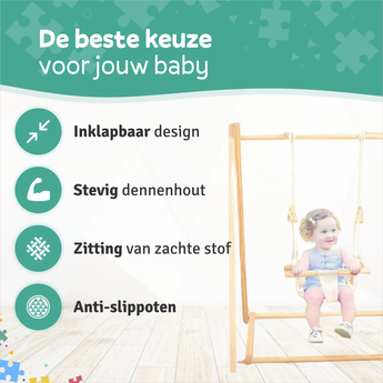 Als ouder wil je zeker weten dat je baby veilig én comfortabel schommelt. Het stevige dennenhouten frame, het zachte kussentje en de anti-slip poten zorgen voor stabiliteit en een gerust gevoel. Zo kan jouw kleintje heerlijk spelen of ontspannen, terwijl jij zorgeloos toekijkt.
