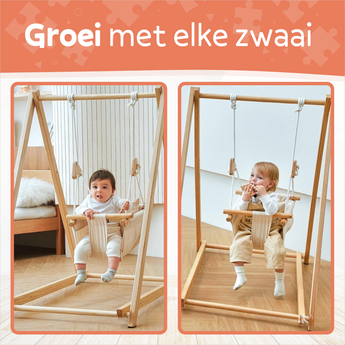 Weinig ruimte? Geen probleem! Dankzij het slimme opvouwbare ontwerp is deze houten babyschommel zo opgeborgen wanneer je hem niet gebruikt. Zo blijft je huis netjes en kun je de schommel snel weer tevoorschijn halen.